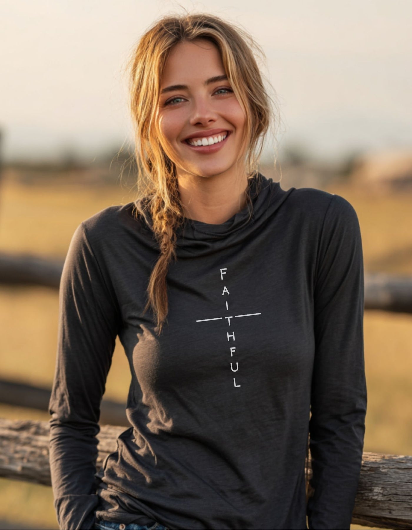 Women's Faithful Cross Hooded Long-Sleeve Tee
