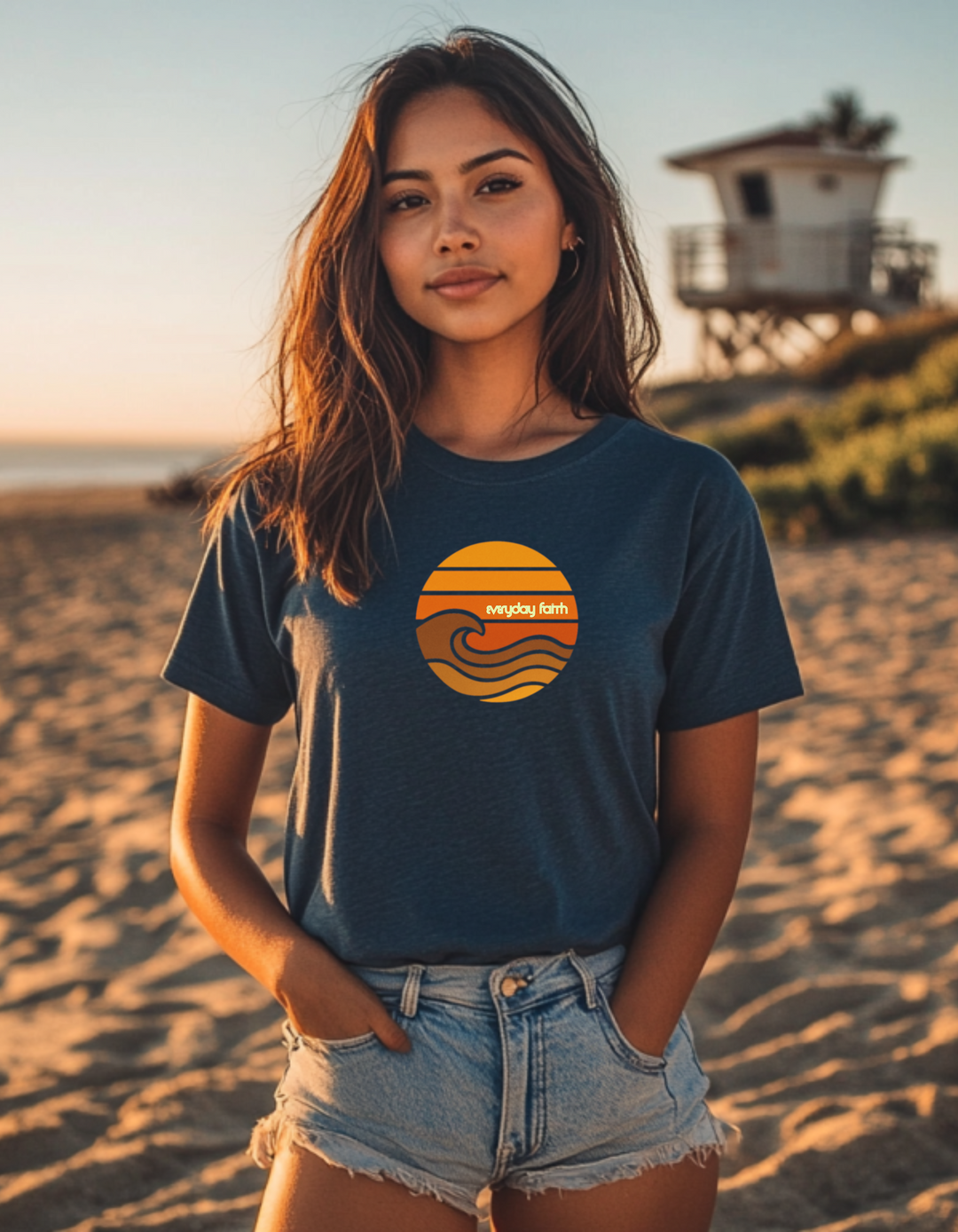 Women's 1970's Retro Sun and Surf Short Sleeve Tee Shirt