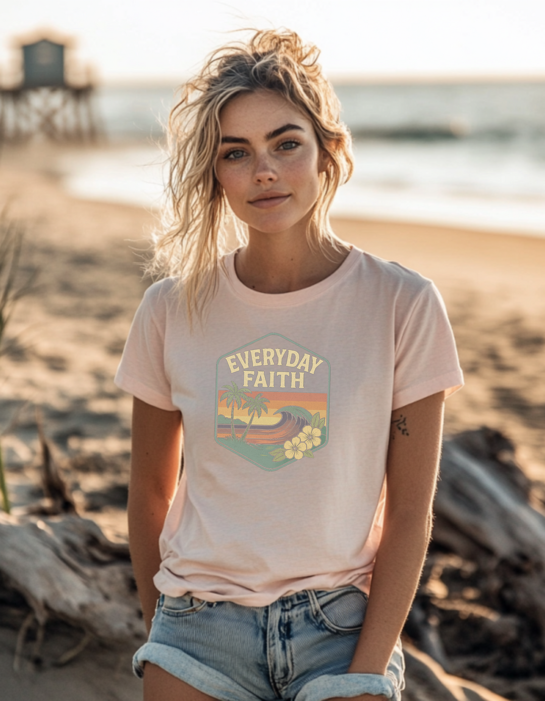 Women's Everyday Faith Faithful Faded Coastal Logo Long Sleeve Tee