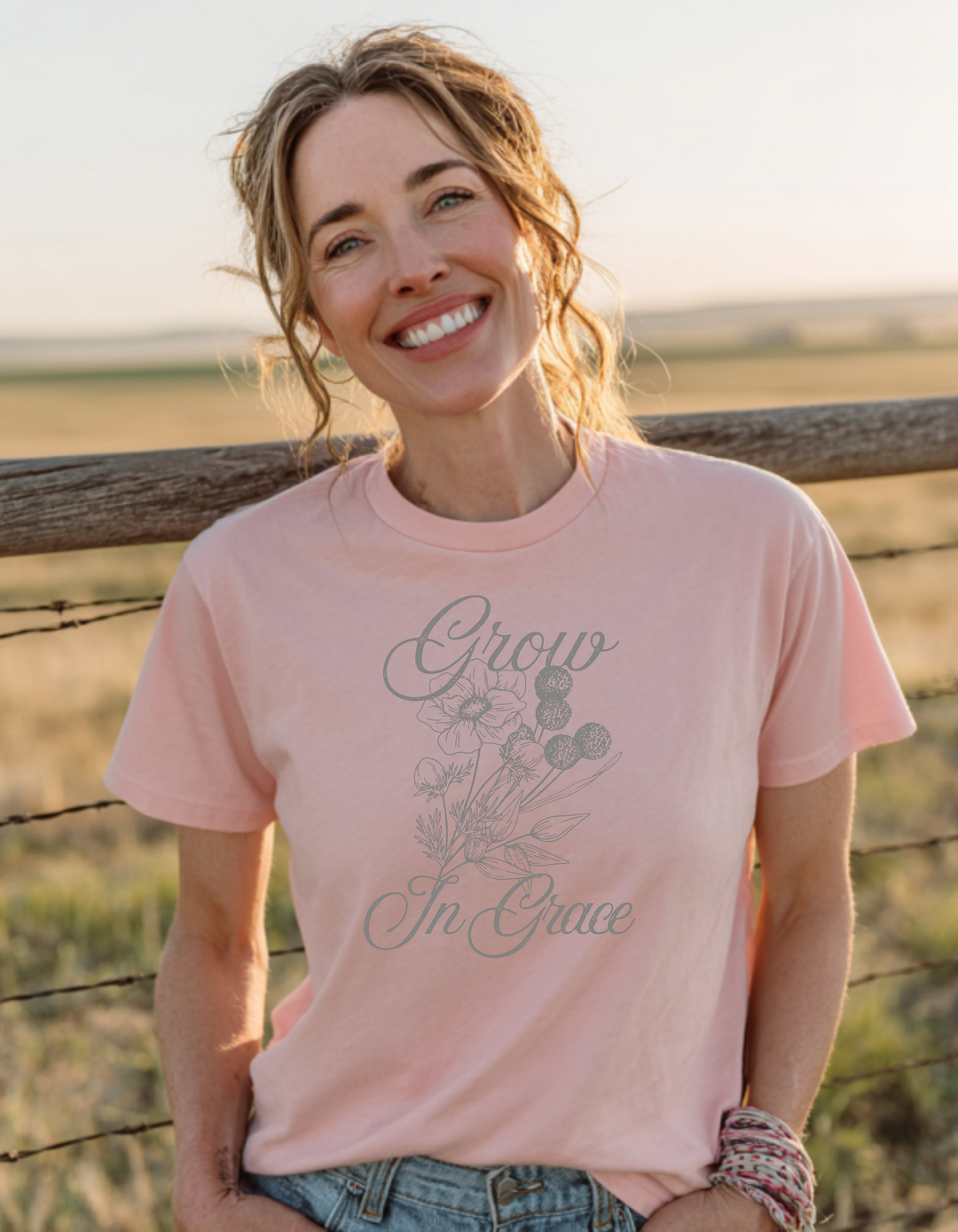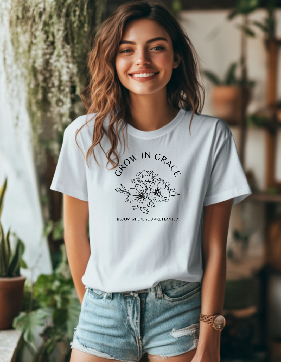 Women's Everyday Grow In His Grace Floral Hooded Long-Sleeve Tee